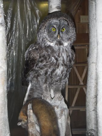 Blue Grouse-male-closed wing-table mount-sitting on shed mule deer