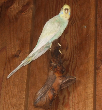 color phase)-2 budgies on one base-1 open wing and 1 closed wing-wall