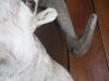 the inside of the left horn but is hardly noticeable as it is at the lower back
